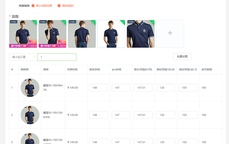 分销价格是按等级价格的形式显示,运算逻辑是等级价格=吊牌价格*折扣。该页面的批发价格和Yes价格给分销价格做参考,也支持在该页面对于批发价格和Yes价格进行修改,与商品管理中的数据同步。如有批量修改价格的需求,可以点击批量设置,针对当前页面的所有sku数据进行批量维护。